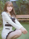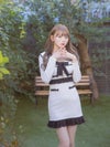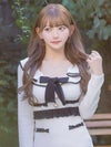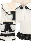 - [韓国ドレス] ネックリボンレースフリル長袖バイカラータイトミニドレス