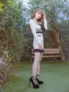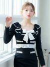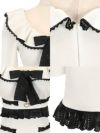 #黒崎みさ #ガーリーワンピ #ウエストマーク #マーメイド #二の腕カバー #ネックリボン #長袖 #モノトーン #ホワイト #ウエストカバー