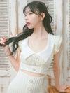 トレンドのウエストカットで、キュートに肌魅せを叶える。襟付きデザインがクラシカルなかわいさを演出。