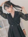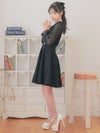[韓国ドレス] 襟デザインカシュクール長袖パフスリーブラメ入りニットフレアミニドレス