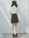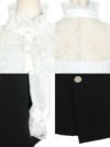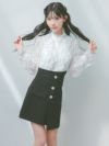 カップ キャミソール付き スタンドネック フリル 総レース 長袖 ブラウス×ビジュー付き ラップ風スカパンセットアップドレス