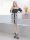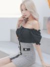 #ぴょな #オフショル #ツイード #タイトドレス #ウエスト切替 #ウエストカバー #モノトーン #セクシードレス #二の腕カバー #ブラック