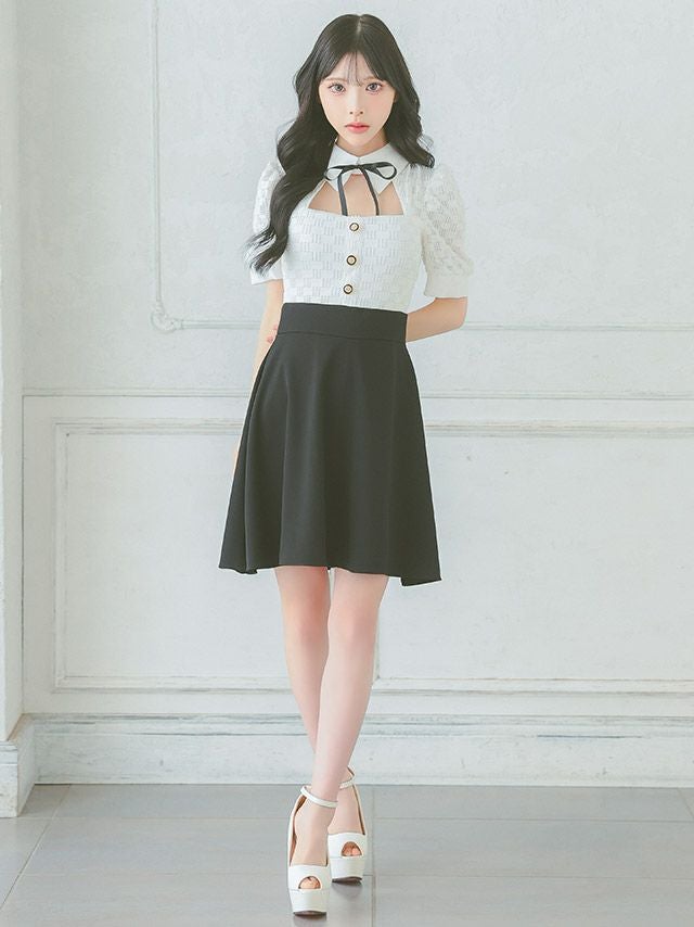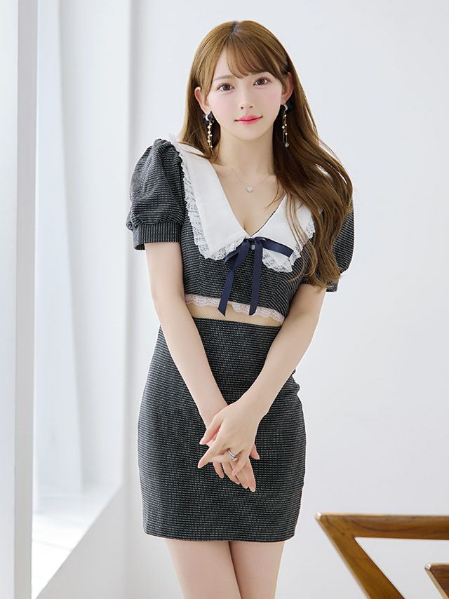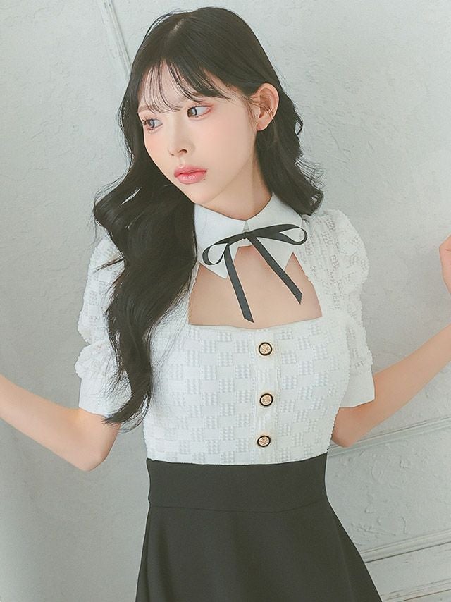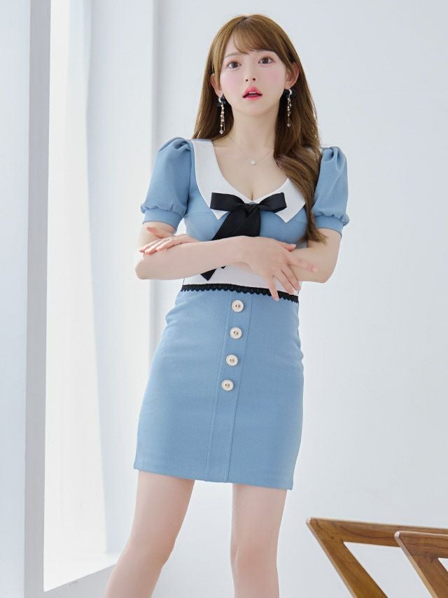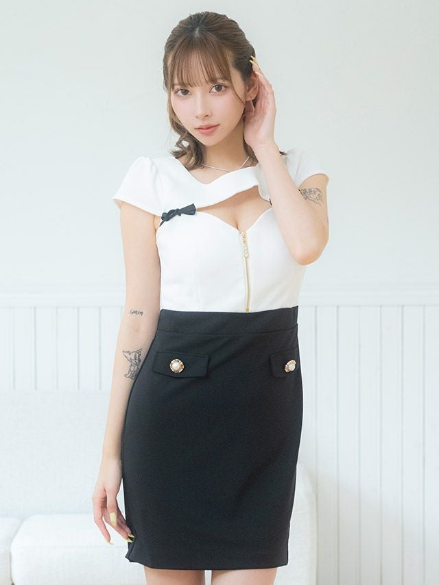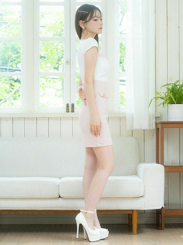 清楚でガーリーな印象で好感度大◎ 谷間魅せやタイトな形で色気もプラスできます。