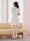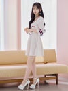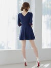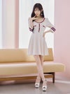4. [韓国ドレス] 異素材ラインパフスリーブ袖ありフレアミニドレス