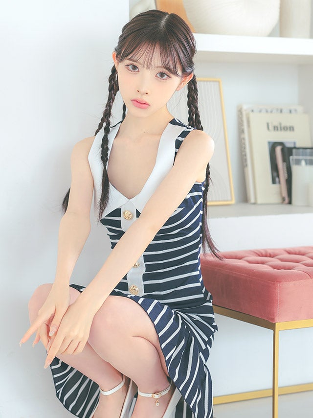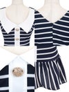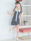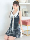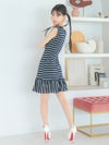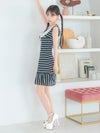 3. [韓国ドレス] 襟付き ノースリーブ マリン風ボーダー フレアミニドレス