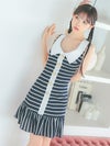 [韓国ドレス] 襟付き ノースリーブ マリン風ボーダー フレアミニドレス