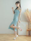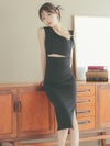 3. [韓国ドレス] ノースリーブウエストカットワンショル風膝丈スリット入りタイトドレス
