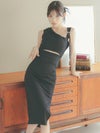 [韓国ドレス] ノースリーブウエストカットワンショル風膝丈スリット入りタイトドレス
