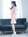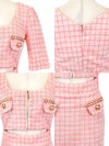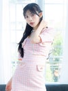 3. [韓国ドレス] フロントジップ半袖チェック柄ツイードウエストカットマーメイドミニドレス