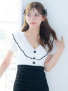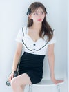 4. [韓国ドレス] フリルデザインウエスト切替パイピング半袖ラップデザインタイトミニドレス