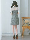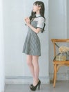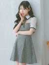 3. [韓国ドレス] 襟デザインバストカットネックリボンチェック柄半袖フレアミニドレス