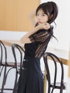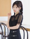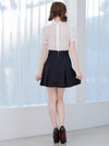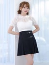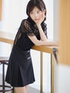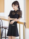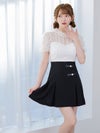[韓国ドレス] モノトーンウエスト切替レースデザイン半袖フレアミニドレス