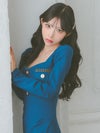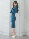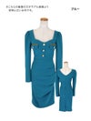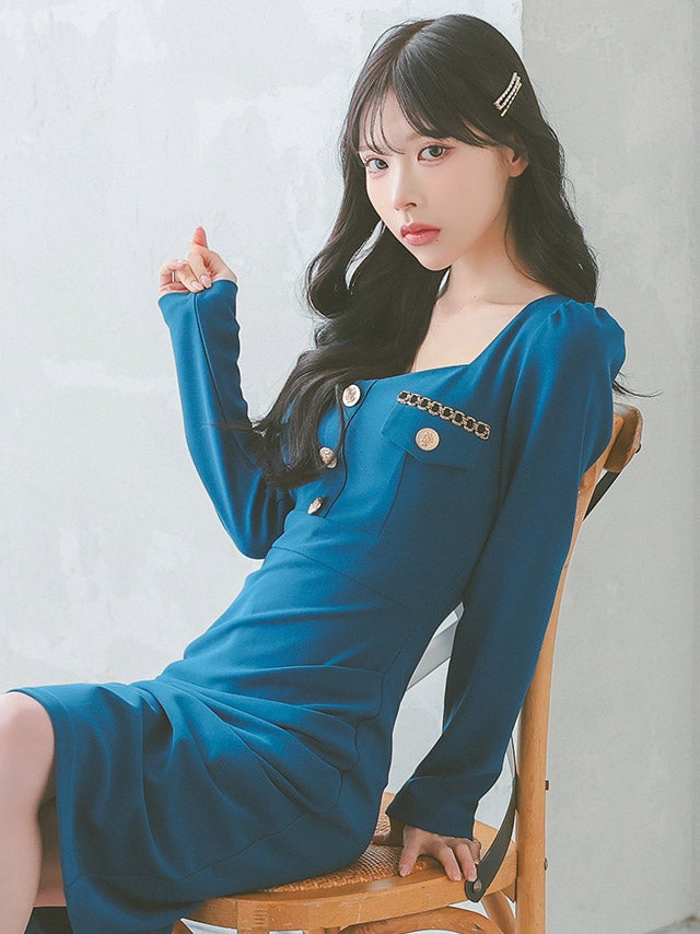 [韓国ドレス] ゴールドボタン付き長袖カシュクールタイトミニドレス