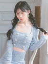 4. [韓国ドレス] ツイードパールボタン長袖マーメイドミニドレス
