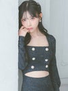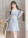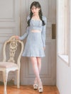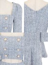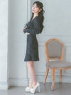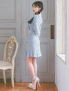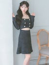 [韓国ドレス] ツイードパールボタン長袖マーメイドミニドレス