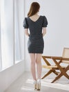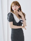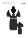 3. [韓国ドレス] 襟デザイン リボン 半袖 パフスリーブ ウエストカット モノトーン ミニドレス