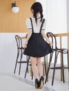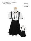 3. [韓国ドレス] サロペ風 モノトーン 半袖 ネックリボン フレアミニドレス
