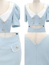 [韓国ドレス] ウエストカット 半袖 パフスリーブ ツイード 襟デザイン タイトミニドレス