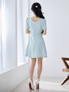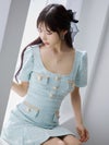 3. [韓国ドレス] スクエアネックパフスリーブ半袖ツイードフレアミニドレス