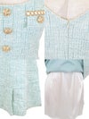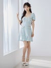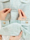 [韓国ドレス] スクエアネックパフスリーブ半袖ツイードフレアミニドレス