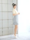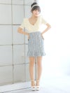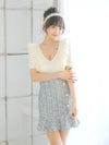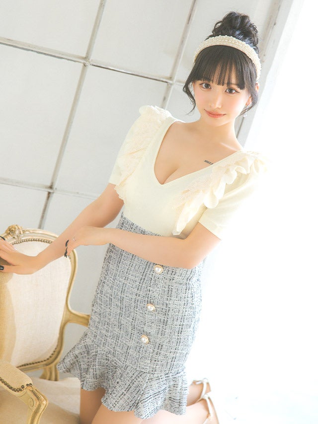 3. [韓国ドレス] 袖ありフリルレース切り替えツイードパールボタンタイトミニドレス