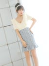 [韓国ドレス] 袖ありフリルレース切り替えツイードパールボタンタイトミニドレス