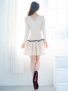 4. [韓国ドレス] 長袖 パイピング ニット フリル フレアミニドレス