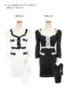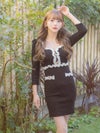 [韓国ドレス] モノトーンパイピングニットゴールドボタン袖ありタイトミニドレス
