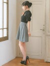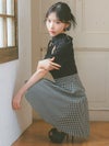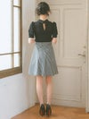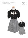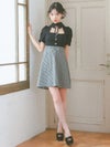 [韓国ドレス] ネックリボン襟デザイン半袖パフスリーブバストカット切り替えギンガムチェック柄フレアミニドレス