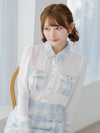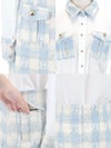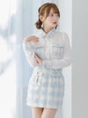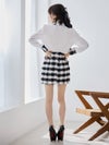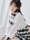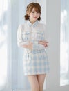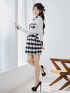 [韓国ドレス] 襟付き長袖シフォンシャツチェック柄セットアップタイトミニドレス