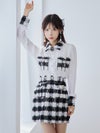 [韓国ドレス] チェック柄襟付き長袖シフォンシャツセットアップタイトミニドレス