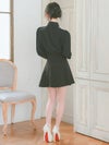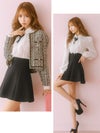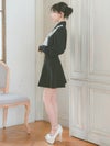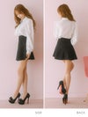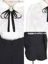 [韓国ドレス] ブローチ付き長袖ケミカルレース襟デザインフリルブラウス×スカートパンツセットアップドレス