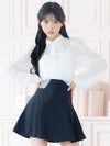 [韓国ドレス] 肩あきブローチ付きネックリボン襟デザインモノトーンフリル長袖セットアップフレアミニドレス