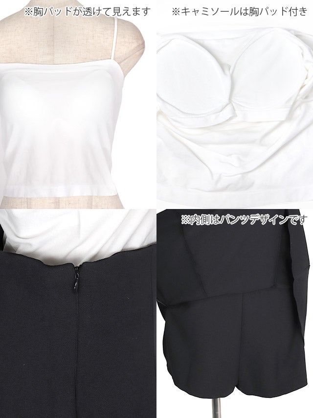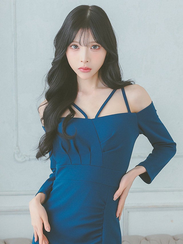 [韓国ドレス] 肩あきギャザーサロペット風タイトミニドレス