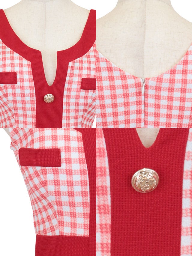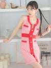 [韓国ドレス] パイピング ギンガムチェック ノースリーブ タイトミニドレス