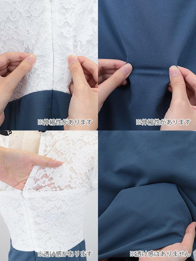 [韓国ドレス] フリル付き シアーリボントップス ウエスト切替 フロントスリット 膝丈タイトドレス