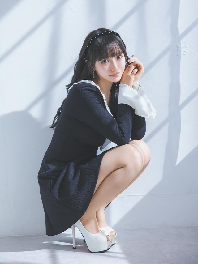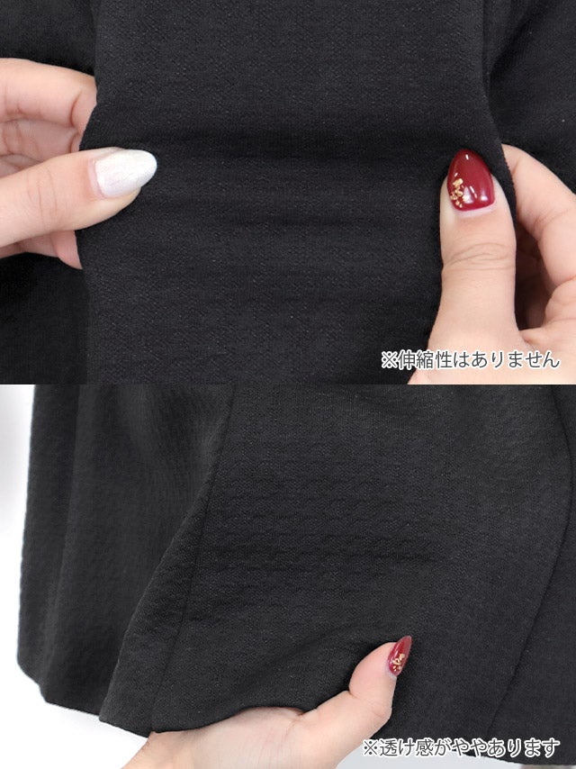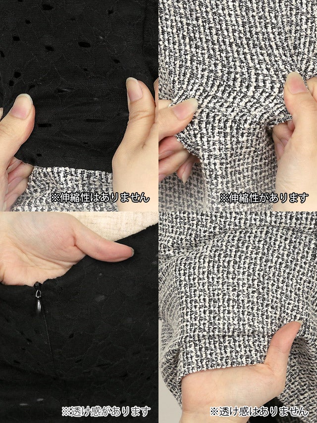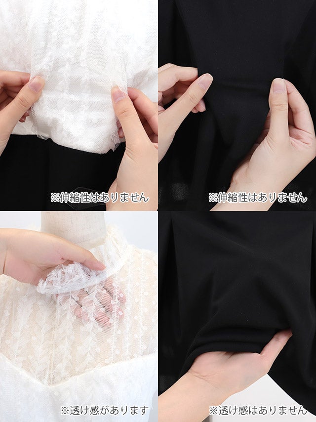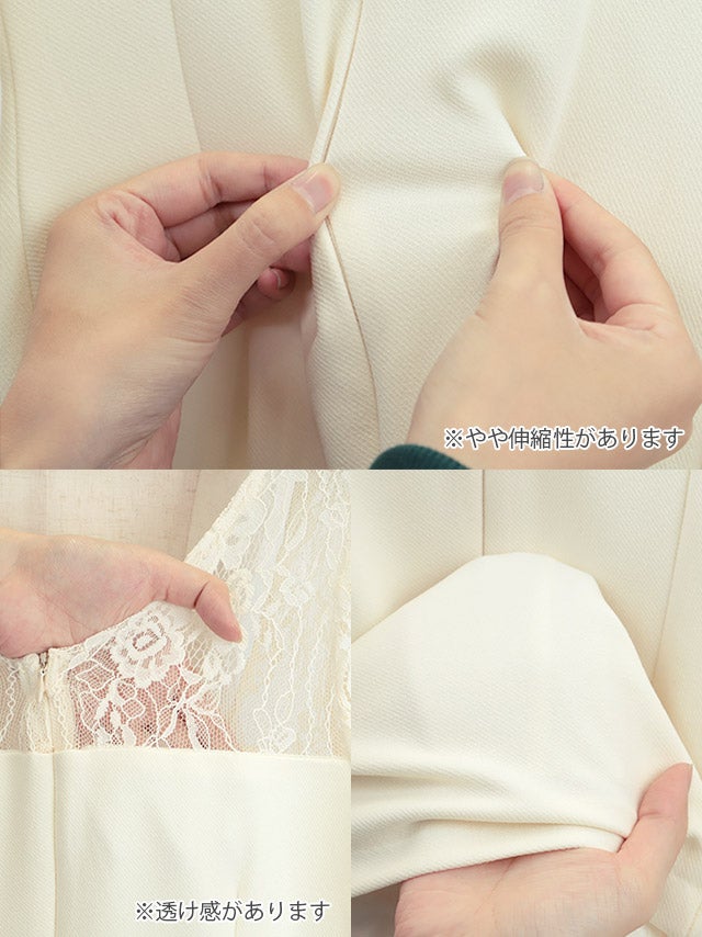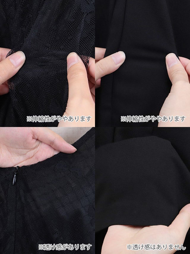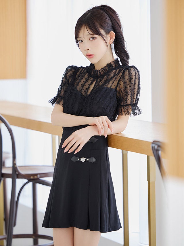 モノトーン 袖あり レース ハイウエスト切替 フレアミニドレス