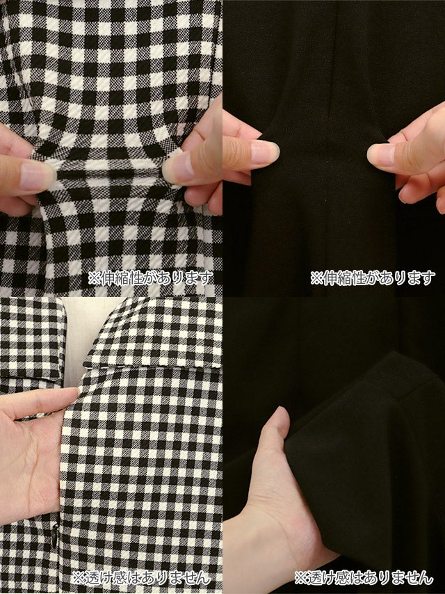 長袖 シアー 切り替え ネックリボン チェック柄 裾フリル ウエストカット タイトミニドレス