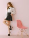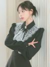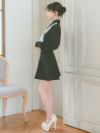 #緩苺 #セットアップ #ネックリボン #襟デザイン #フレアドレス #モノトーン #ガーリーワンピ #二の腕カバー #ブラック #長袖