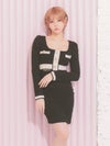 3. [韓国ドレス] 長袖パイピングウエストカットアウトスパンコールニットタイトミニドレス