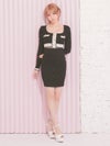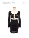 4. [韓国ドレス] 長袖パイピングウエストカットアウトスパンコールニットタイトミニドレス
