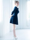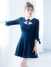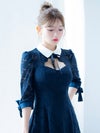 3. [韓国ドレス] 襟デザインネックリボン総レース袖ありフレアミニドレス