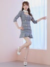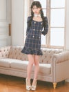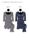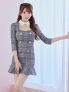 [韓国ドレス] チェック柄スクエアネック袖あり襟デザインタイトミニドレス