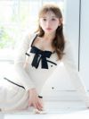 #黒崎みさ #ネックリボン #ガーリーワンピ #美脚魅せ #フレアドレス #二の腕カバー #長袖 #ベージュ