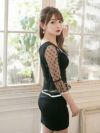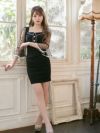 #黒崎みさ #モノトーン #ドット柄 #タイトドレス #ガーリーワンピ #二の腕カバー #七分袖 #ブラック