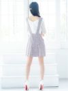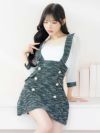 フラワーレース ドッキング サロペット 袖あり パフスリーブ ハイウエスト切替 フレアミニドレス