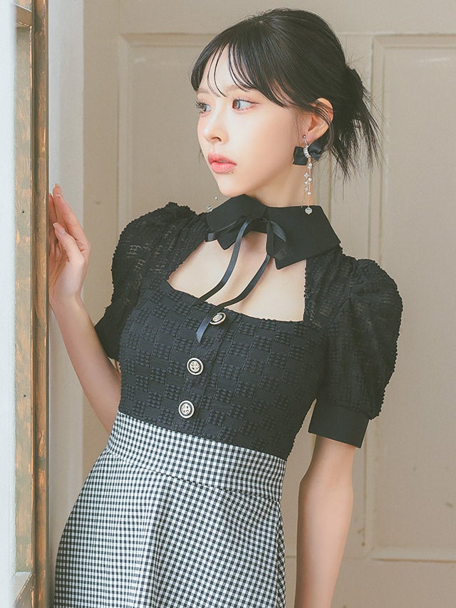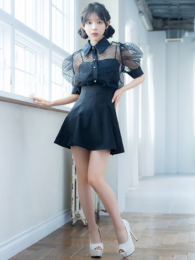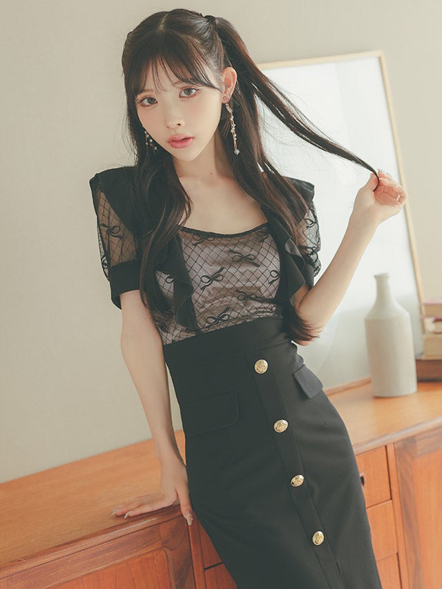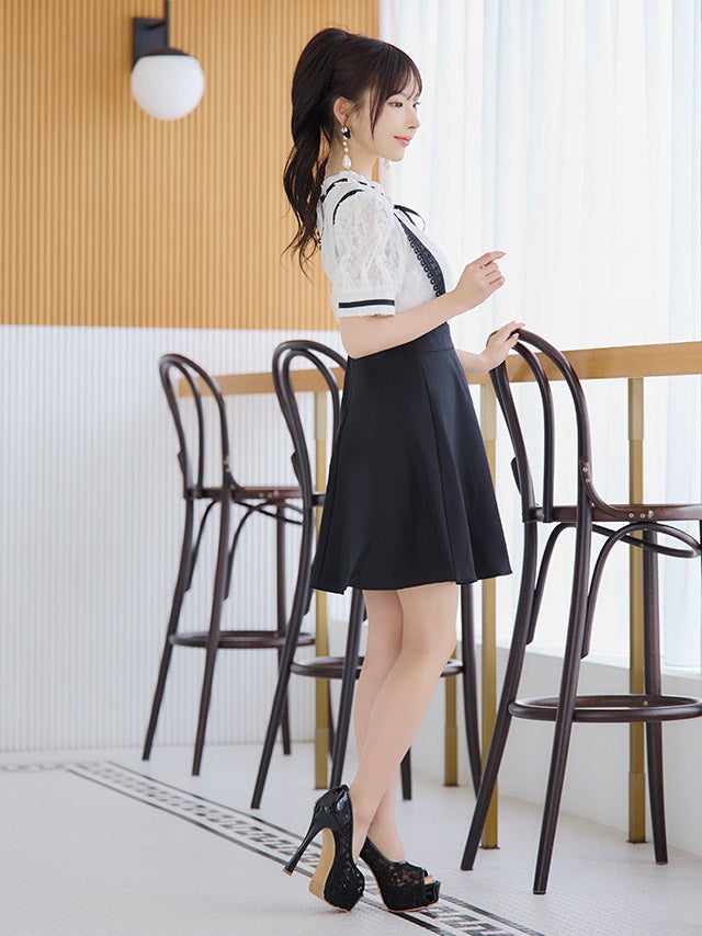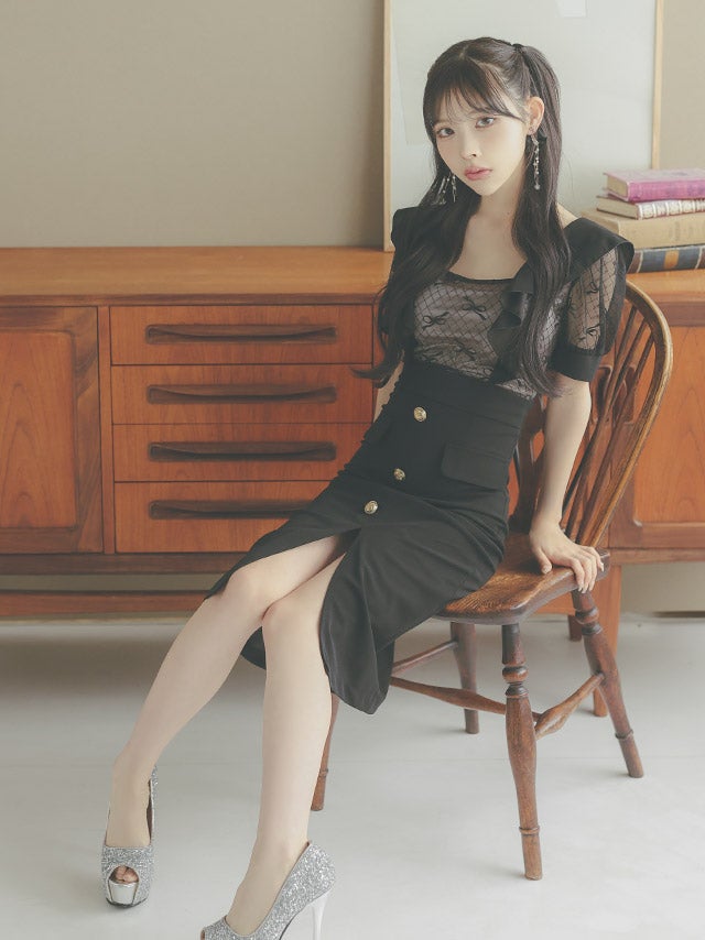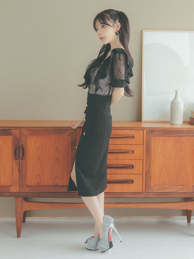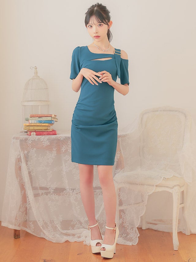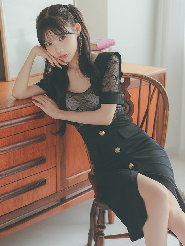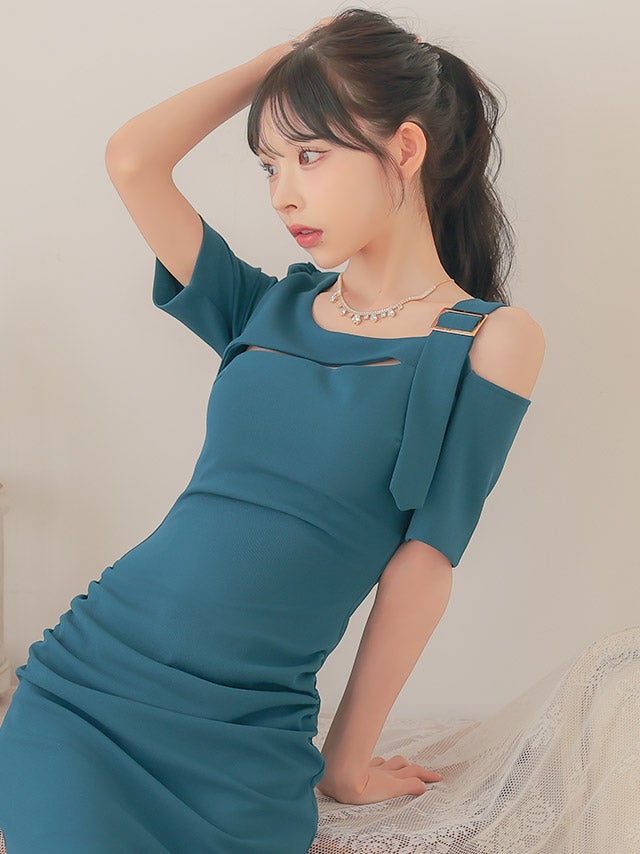 ウエストやバストのカットデザインで上品に肌見せを楽しめます。