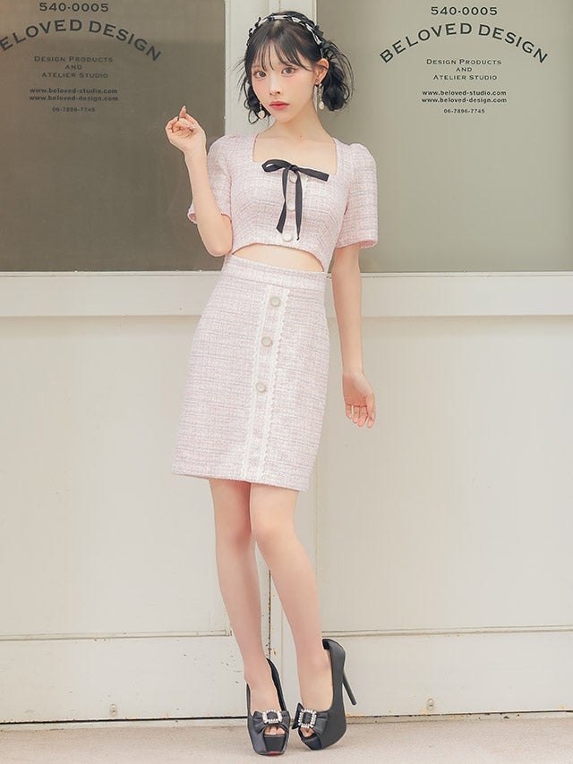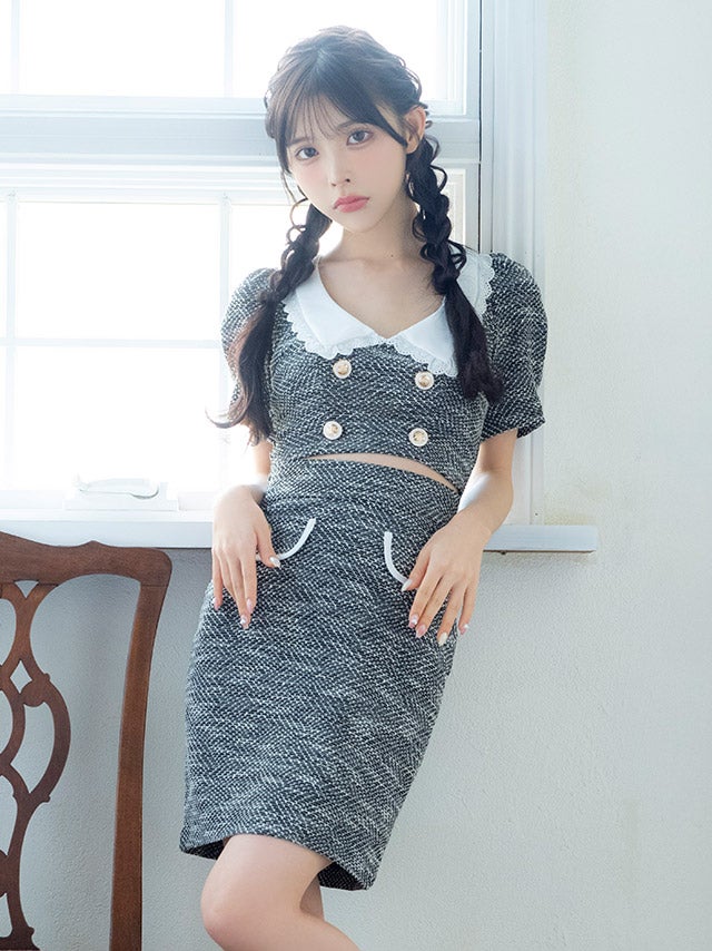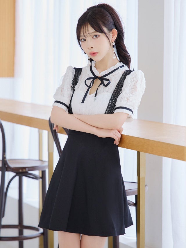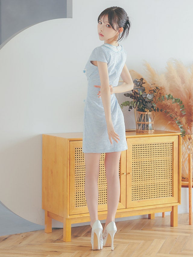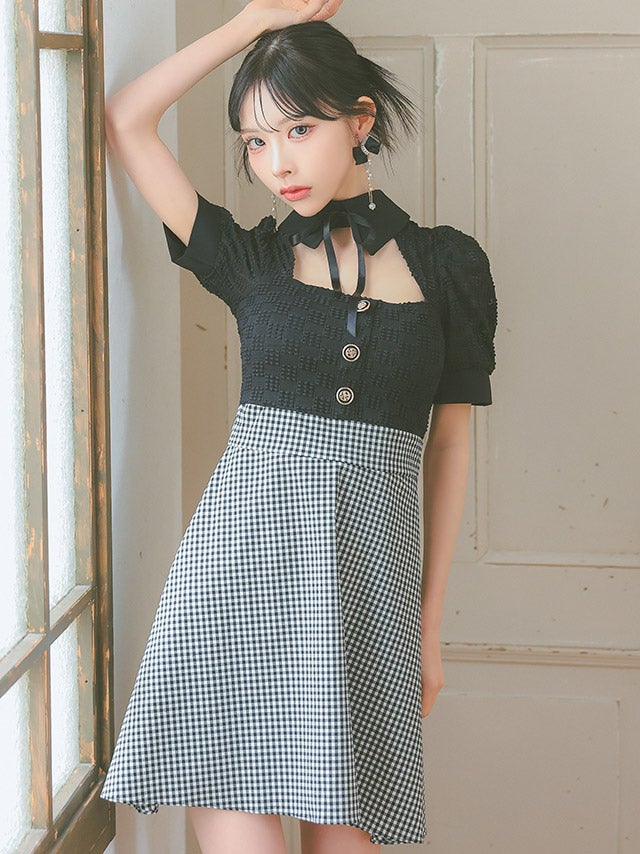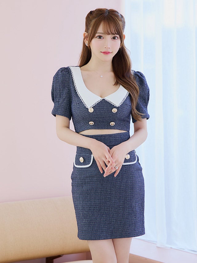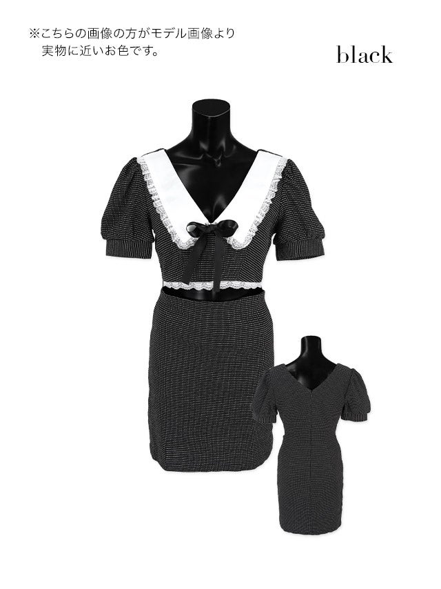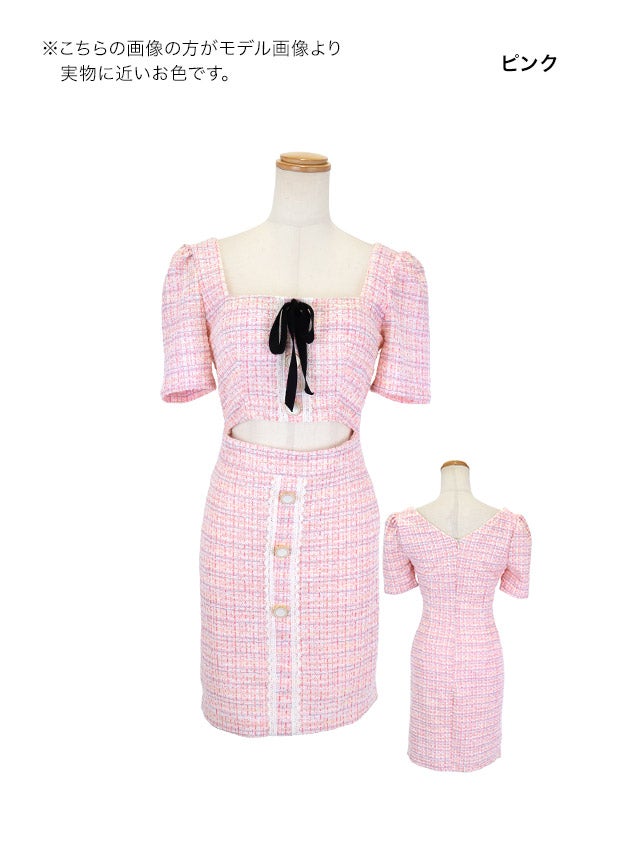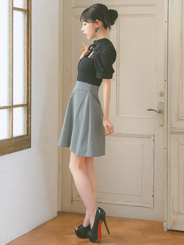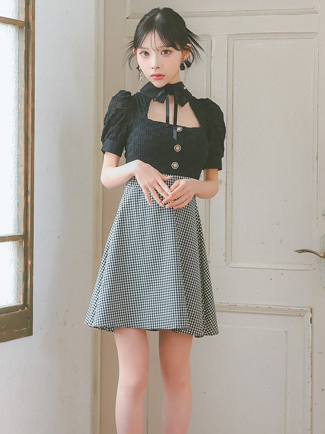 ウエストやバストのカットデザインで上品に肌見せを楽しめます。