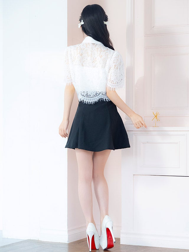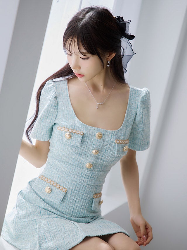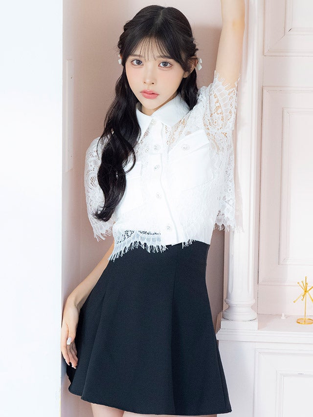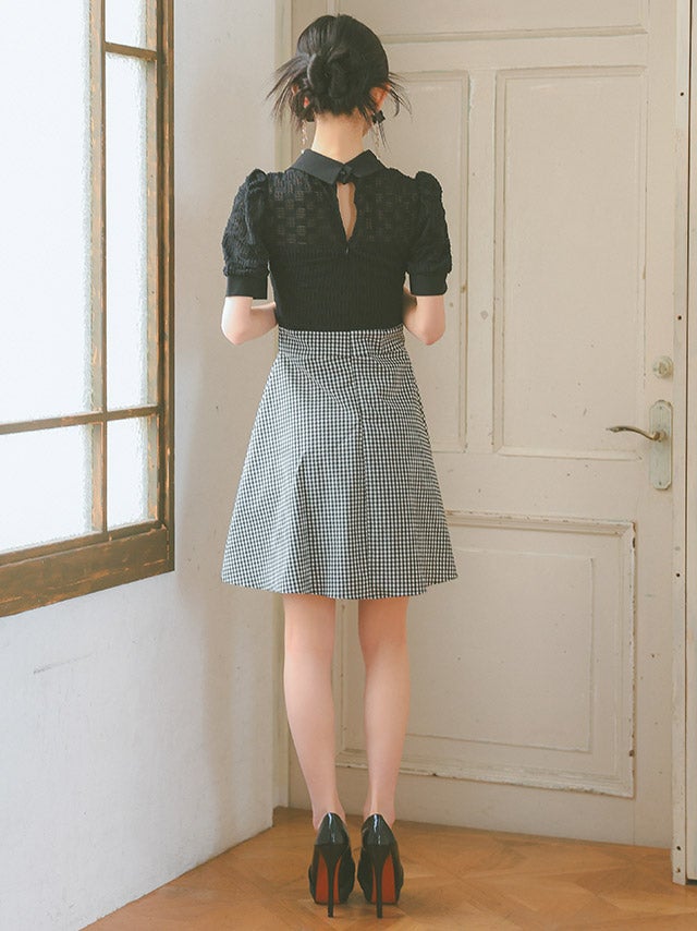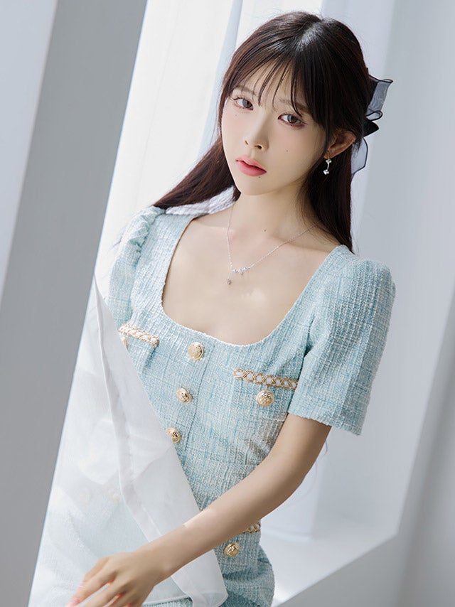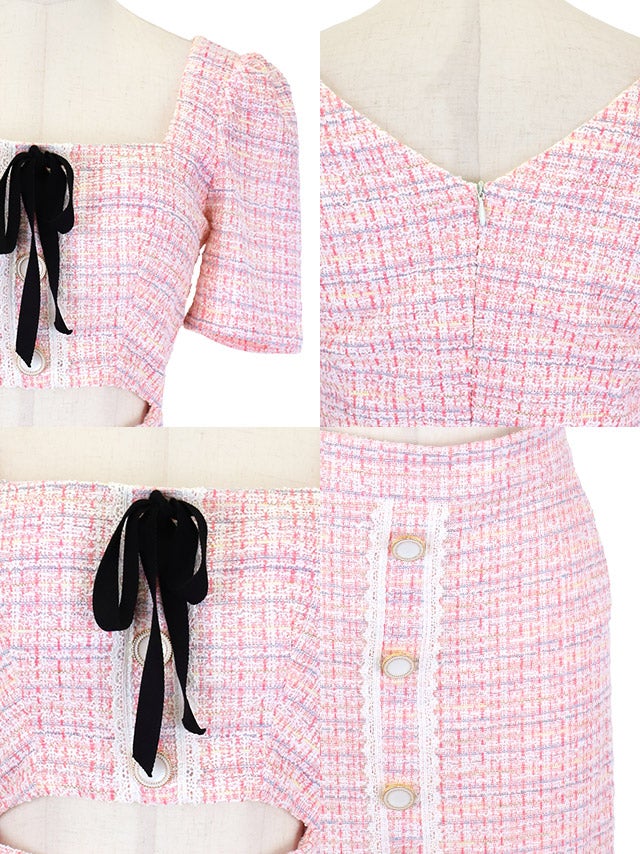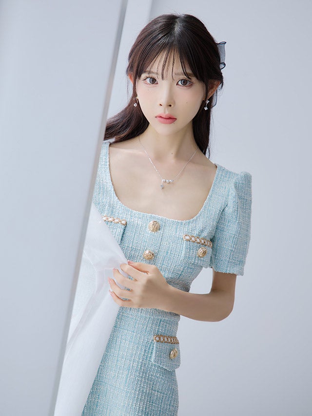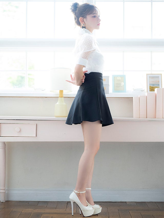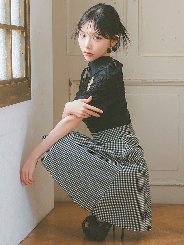 ウエストやバストのカットデザインで上品に肌見せを楽しめます。