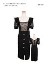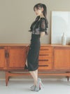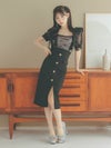 - [韓国ドレス] フリル付き シアーリボントップス ウエスト切替 フロントスリット 膝丈タイトドレス